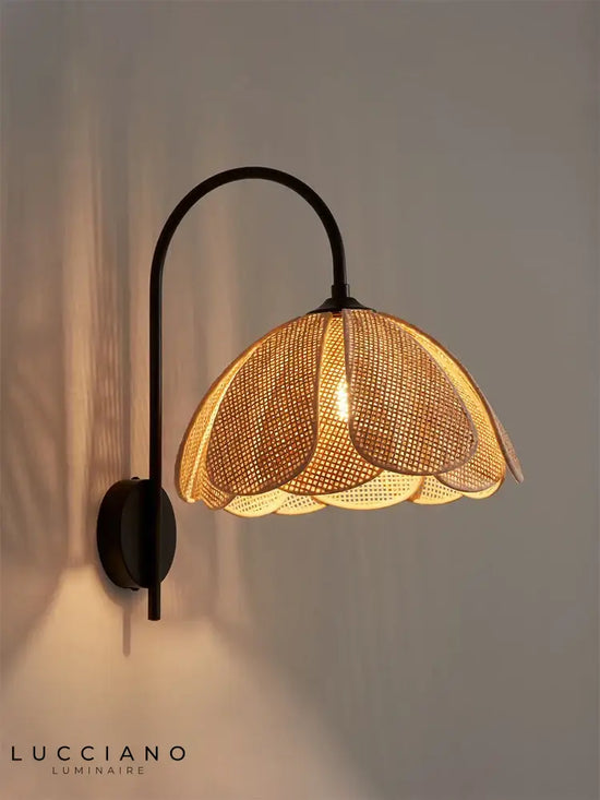 Add a touch of exoticism and refinement to your interior with the bamboo palm wall light . This light, inspired by palm trees and natural elements, diffuses a soft and soothing light that creates a warm and relaxing atmosphere in a living room, bedroom or relaxation area. Its palm leaf design and bamboo structure make it a unique piece and ideal for a nature-inspired decoration.