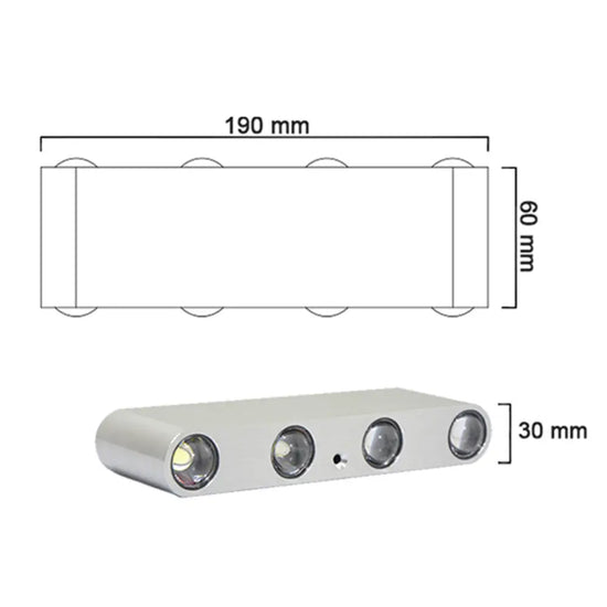 Fabriqué avec un **boîtier métallique chromé de haute précision**, ce luminaire mural offre des dimensions compactes de 16 x 6 x 3 cm qui lui permettent de s'intégrer harmonieusement dans tous les environnements intérieurs. Sa technologie LED innovante garantit une **luminosité optimale** avec seulement 8W de consommation, proposant une palette de couleurs impressionnante : lumière chaude, froide, jaune ou multicolore.