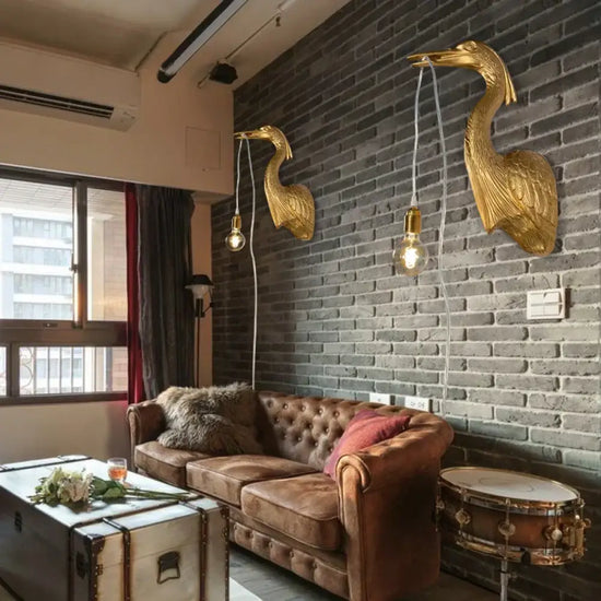 Apportez une note unique à votre intérieur avec cette applique murale dorée en forme de tête de grue. Son design nordique et son style Art Déco allient originalité et élégance.