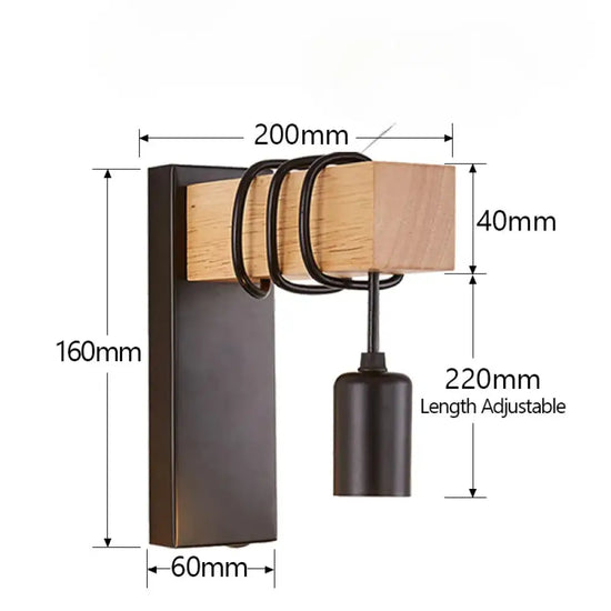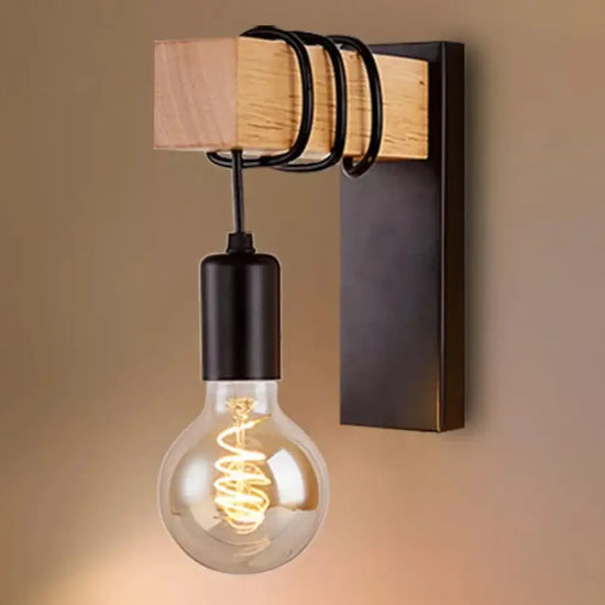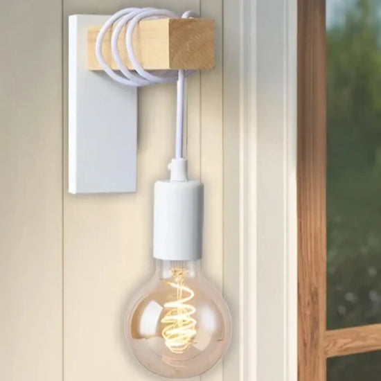 This wall light is a light fixture that combines wood and metal , two materials typical of the industrial style . It has a black or white iron structure, with a natural wood socket and a perforated metal lampshade. It diffuses a warm and subdued light, which creates a retro and cozy atmosphere. This wall light is ideal for decorating a living room, bedroom or office with character and originality .