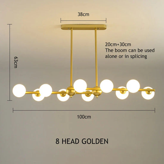 Conçu par la prestigieuse marque SANDYHA, ce lustre est fabriqué avec des matériaux de qualité tels que le verre et le métal, assurant à la fois robustesse et élégance. Sa puissante capacité lumineuse, variant de **249 à 2000 lumens**, est parfaite pour illuminer des surfaces de **15 à 30 m²**. Grâce à son **voltage de 90-260V**, il s'adapte sans problème à diverses régions du monde.