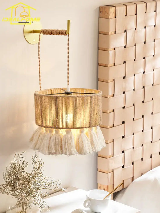 Applique Murale en Corde Naturelle Suspendue Artisanalement - Un Luminaire Unique et Élégant