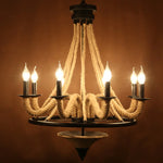 Lustre Loft Américain en Bois avec Corde de Chanvre Industrielle