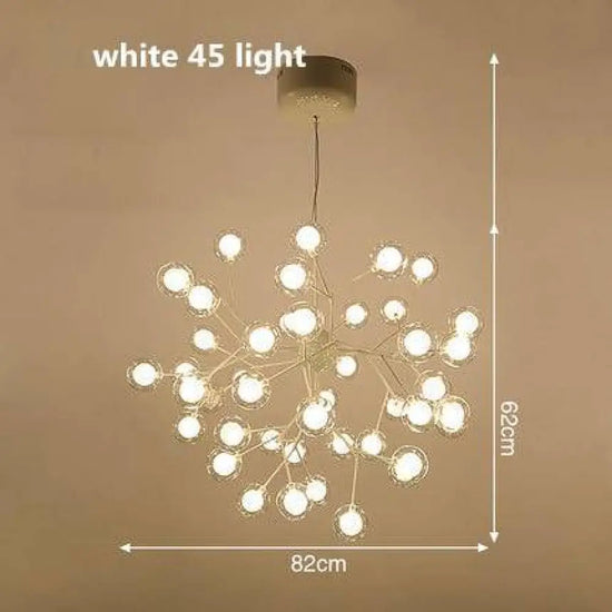 Le Lustre Arbre Branches Boules Verre LED est le choix par excellence pour qui souhaite marier élégance et modernité dans son intérieur. Ce luminaire exceptionnel s'inspire de la nature avec ses bras délicats semblables à des branches d'arbre et agrémentés de boules en verre évoquant des fruits suspendus. Conçu pour plus que l'éclairage, ce lustre est une véritable œuvre d'art capable de métamorphoser et d'anoblir n'importe quelle pièce, qu'il s'agisse de votre salon, de votre salle à manger ou d'une chambre. Disponibles en plusieurs formats allant de 9 à 63 lampes, ces lustres s’adaptent parfaitement à toutes sortes d’espaces, qu'ils soient intimes ou spacieux. Chaque modèle est équipé d’ampoules G4 LED, assurant une lumière vive et homogène tout en étant économique en énergie. Les ampoules sont incluses, vous garantissant une installation simple et rapide sans besoin de matériel supplémentaire. Certifié selon les standards internationaux CE, CQC, RoHS, FCC, ce lustre vous assure sécurité, fiabilité et respect de l’environnement. Vous offrez ainsi à votre maison un éclairage de qualité supérieure sans compromettre votre responsabilité écologique.