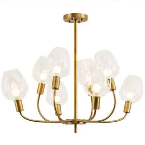 Avec le Lustre doré et verre fumé élégant, vous ne bénéficiez pas seulement d'une source lumineuse de qualité, mais vous ajoutez également un élément de décor captivant à votre espace. Bien que les ampoules ne soient pas incluses, ce luminaire vous offre la possibilité d'ajuster la température de la lumière suivant votre ambiance préférée.