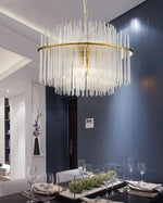 Lustre en Cristal Design Nordique Tige en Verre Métal Doré