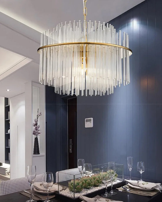 Découvrez le charme intemporel du lustre en cristal design nordique tige en verre métal doré. Ce luminaire d'exception, fusionnant élégance et modernité, est conçu pour transformer n'importe quel espace en un refuge de sophistication. Ses tiges en verre transparent et ses finitions en métal doré offrent un éclairage raffiné et chaleureux, idéal pour illuminer un salon, une salle à manger ou même une chambre à coucher. Que vous soyez amateur de décoration contemporaine ou classique, ce lustre apportera une touche de luxe indéniable à votre intérieur.