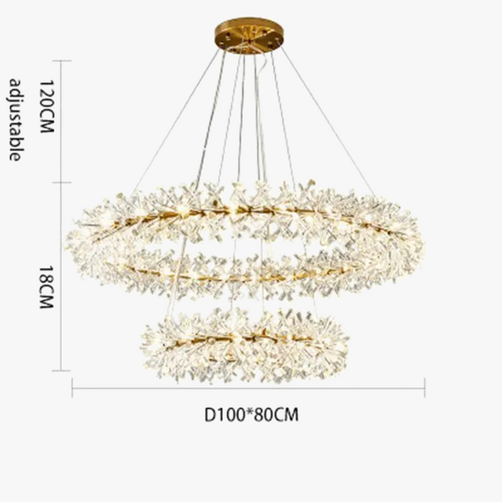 Lustre en Cristal Fleur Luminaire de Luxe avec Anneaux Ronds