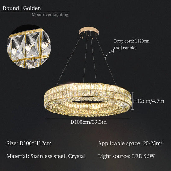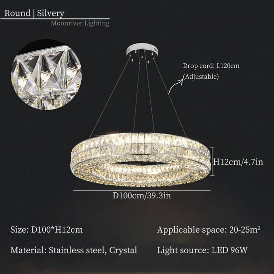 • Élégance intemporelle : Fabriqué avec des cristaux de qualité supérieure et de l'acier inoxydable, ce lustre est conçu pour conserver son éclat et sa beauté au fil des années.
