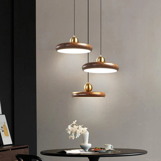Lustre en Fer Imitation Grain de Bois Luminaire Suspendu Variable