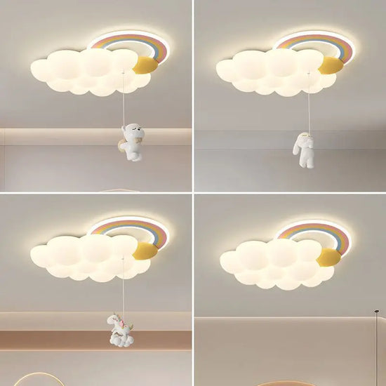 Lustre Arc-en-Ciel Nuage avec Cheval, Lapin et Ours pour Enfants