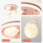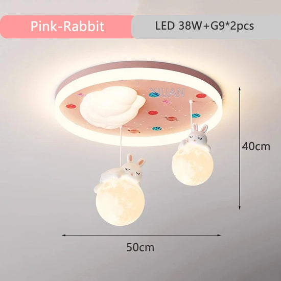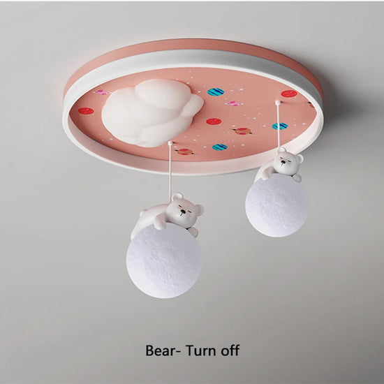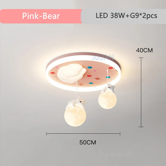 - **Design adorable** : Avec ses motifs d'ours et de lapin sur fond de nuages, notre lustre est parfait pour captiver l'imagination des enfants tout en décorant leur chambre de manière unique.