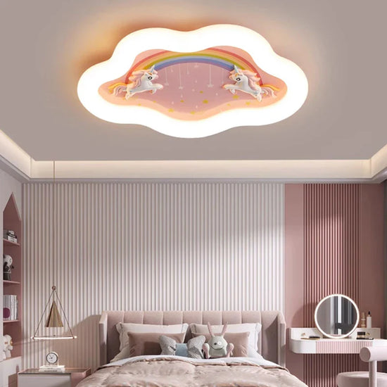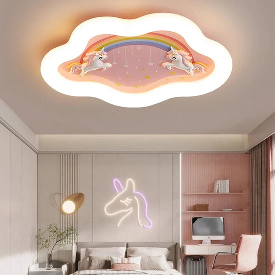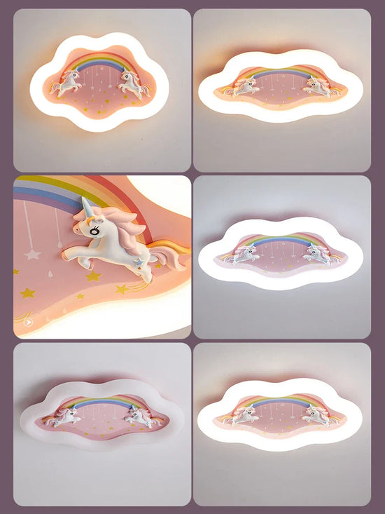 Lustre Nuage Arc-en-Ciel avec Cheval pour Chambre d'Enfant