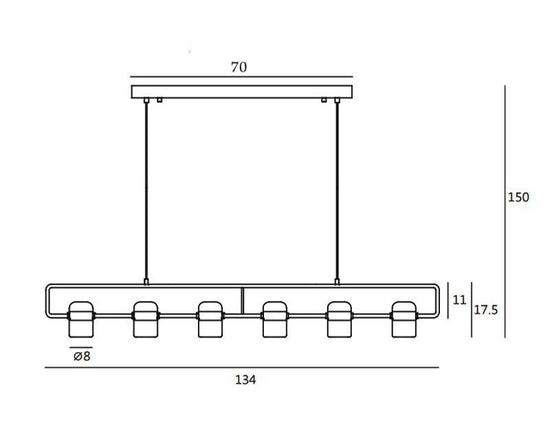 Le lustre suspendu offre une polyvalence impressionnante grâce à ses dimensions variées : 18 x 18,5 cm, 15,5 x 22,5 cm, et 134 x 150 cm. Ces tailles flexibles permettent d'intégrer facilement ce luminaire dans divers espaces, que ce soit dans un salon spacieux, une chambre intimiste ou un bureau élégant.