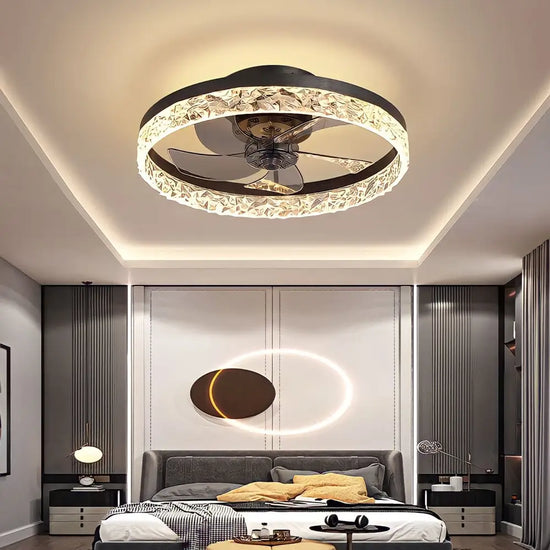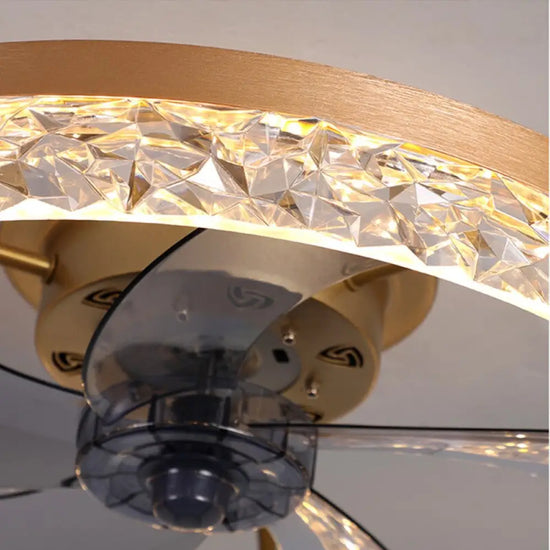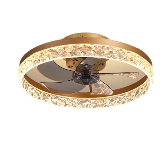 Add modern style to your home with this modern fan chandelier. It features a black/gold finish.