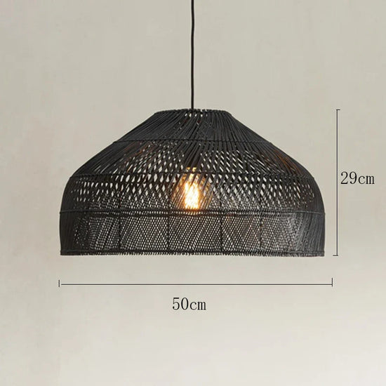Lustre en Rotin Style Asiatique Vintage avec LED Suspendue