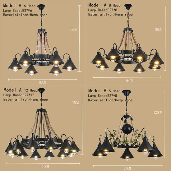 Lustre de café américain Loft en fer forgé rétro Style industriel Restaurant et Bar Hot Pot Restaurant lustre