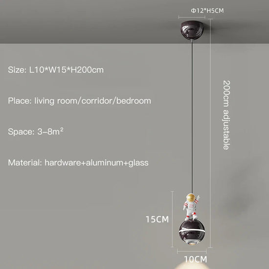 Transformez votre espace intérieur avec notre lustre moderne LED design astronaute petites suspension. Idéal pour créer une atmosphère unique, ce luminaire enchanteur allie design original et technologie LED pour illuminer votre intérieur avec style et fonctionnalité. Conçu pour être accroché dans votre salon, chambre à coucher, ou salle d'étude, cet éclairage suspendu noir s'adapte parfaitement aux environnements modernes et contemporains.