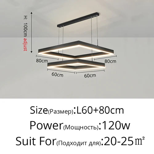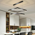 Le lustre Led carré design moderne se veut être la fusion parfaite entre une technologie de pointe et un design minimaliste intemporel. Sa structure élégante en aluminium noir confère au luminaire une apparence raffinée qui s'harmonise avec tous les types d'espaces, offrant ainsi une ambiance lumineuse exceptionnelle. Intégrant une technologie LED avancée, ce lustre assure non seulement une luminosité inégalée mais vous aide également à réduire votre consommation énergétique. Avec la télécommande incluse, ajustez à votre gré l'intensité lumineuse, la température de votre lumière ainsi que les différents modes d'éclairage disponibles.