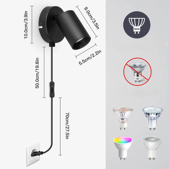 Equipped with a GU10 socket , our wall spotlight is compatible with a wide range of LED bulbs, allowing you to choose the color temperature and light intensity that best suits your needs. LED bulbs are known for their low energy consumption and long lifespan, allowing you to save energy while enjoying quality lighting.