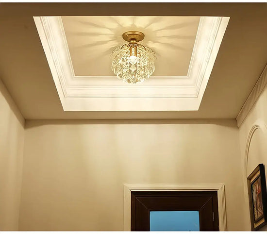 Discover the Crystal Ball Chandelier , an exceptional light fixture that combines aesthetics and functionality to enhance your living space. Made of metal and crystal, this semi-recessed chandelier stands out with its refined design and gold color, offering a warm and luxurious atmosphere to your interior.